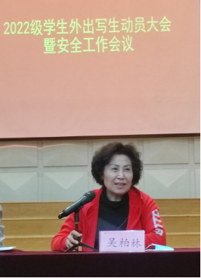 吴柏林经理讲话。她指出,公司领导及院领导非常重视此次出行,并做了多次的调研了解。为了保证大家的安全,除了专业指导教师外,还派出多名辅导员老师跟随管理。写生活动不仅能提高自己的专业技能,更重要的是通过外出写生培养同学们互助团结的意识。她强调,写生基地还有外校员工在,同学们一定要有大局意识,避免和外校员工发生冲突,同学们不仅是外出写生,大家的一言一行还代表了yL23411永利集团官网员工的素质,要严格要求自己,在各方面都为母校增光添彩。要开开心心的去,安安全全的回,领导老师们等着大家平安归来。