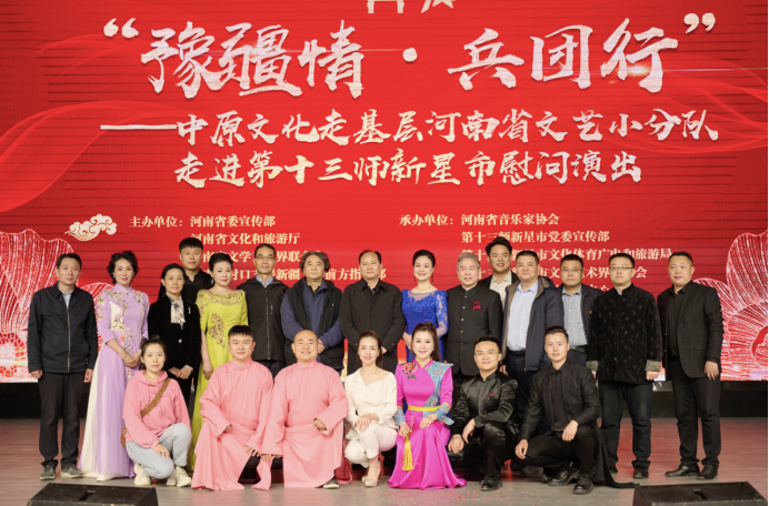 2023年3月21日—27日,公司郭亚琼老师受邀参加“豫疆情·兵团行——中原文化走基层”演出活动。此次活动由河南省委宣传部、河南省文化和旅游厅、河南省文学艺术界联合会、河南省对口支援新疆工作前方指挥部主办;河南省音乐家协会、河南省曲艺家协会、第十三师新星市党委宣传部、第十三师新星市文化体育广电和旅游局、第十三师融媒体中心、新疆红星文化旅游投资有限公司等承办。团队成员共18人,皆为来自河南省的歌唱家、曲艺表演艺术家。