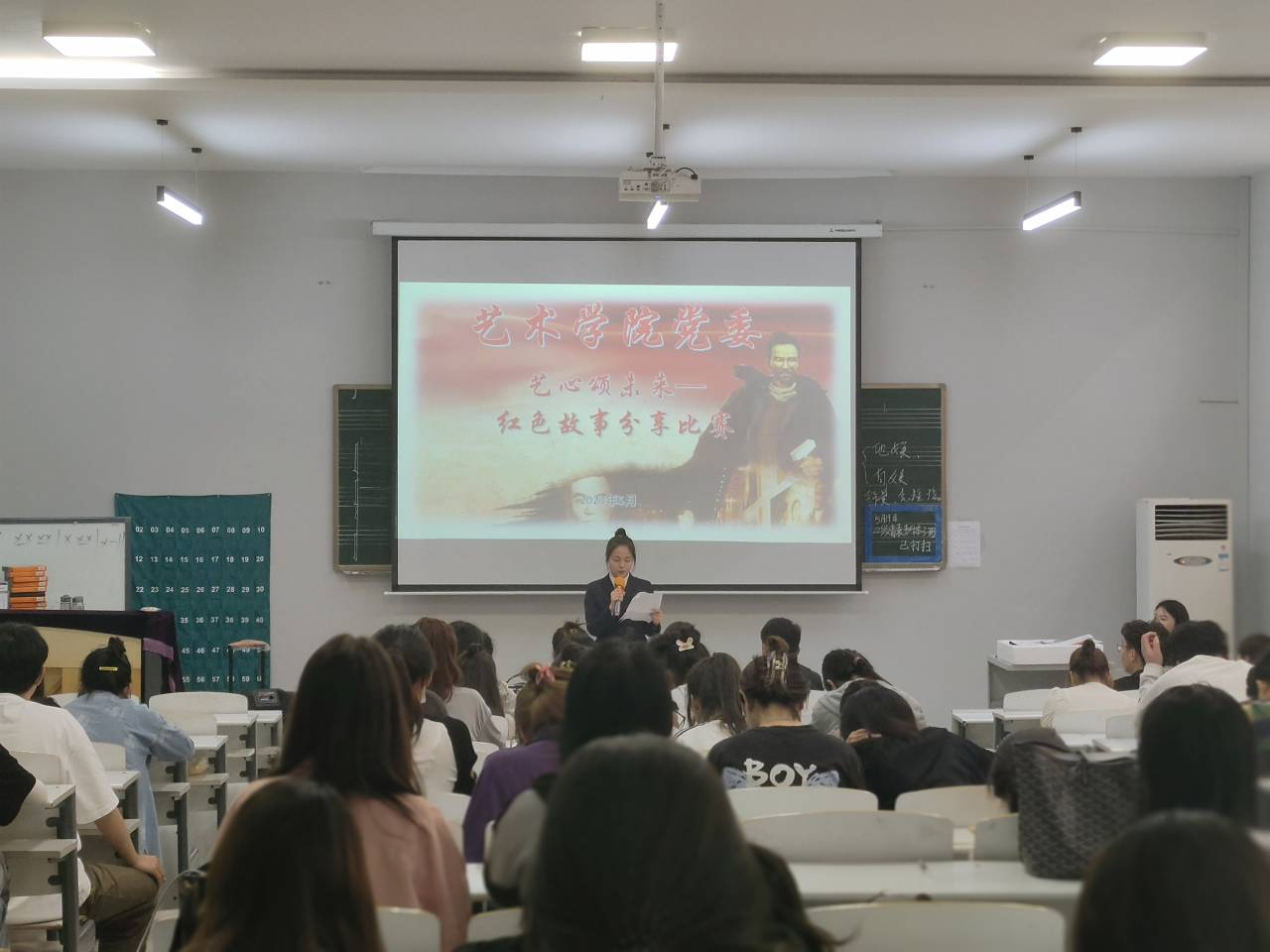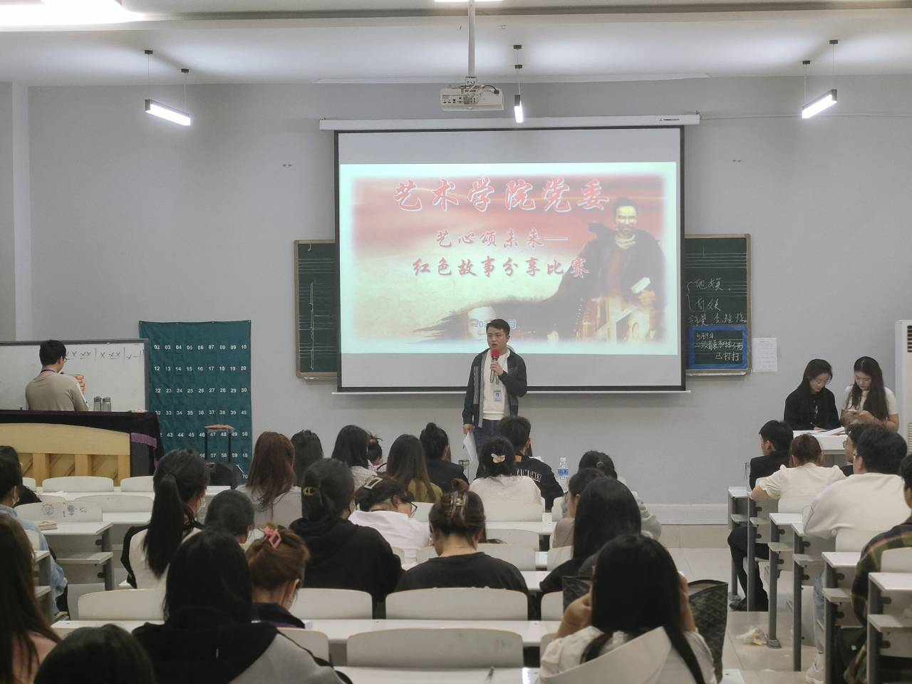 紧接着,比赛活动正式拉开帷幕,比赛第一项是艺心颂未来——红色故事分享,参赛选手给我们分享了一个个动人的故事,让我们能更深刻领会中国共产党百年奋斗的光辉历程和创造的伟大成就,深刻认识中国共产党是一个伟大光荣正确的党。