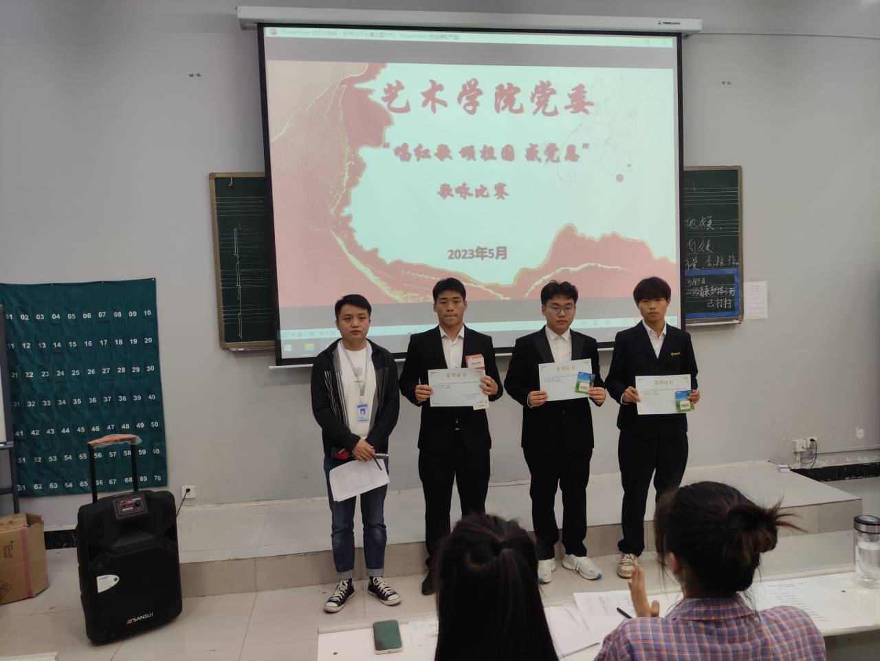 比赛之后,刘世举老师上台公布获奖人员名单并依次为获奖的参赛选手颁发一等、二等和三等荣誉证书及精美奖品,给予他们在比赛活动中优异表现肯定。
