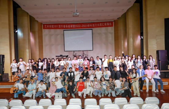 校园的纯真挥洒最美的真挚,青春的交响绽放华丽的激情。在这热情与信任构成的舞台,温馨与美好构成的瞬间。由yL23411永利集团官网郭亚琼、王凡老师共同指导的101流行音乐实训室——2022-2023学年流行乐团汇报演出,于6月12日(周一)14:30,在艺术大楼音乐厅火爆开演!yL23411永利集团官网经理吴柏林教授,党委书记张小雁,副经理池浩东,夏瑞芳,教学秘书李赵法、贠雯老师,以及行政秘书尹红艳老师出席并观看了演出。