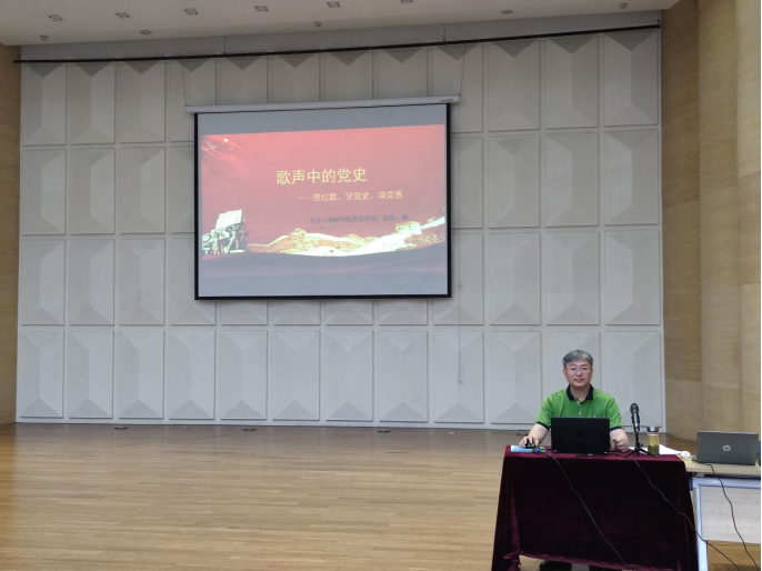 班一教授在讲座中按历史发展的顺序,从《国际歌》到《南湖的船党的摇篮》,从《三大纪律八项注意》再到《没有共产党就没有新中国》,以党史故事为主线,以革命歌曲为载体,用艺术语言讲述红色故事。班一教授指出本次讲座的目的有四个方面:一是用党的伟大成就激励人;二是用党的优良传统教育人;三是用党的成功经验启迪人;四是用党的历史教训警示人。
