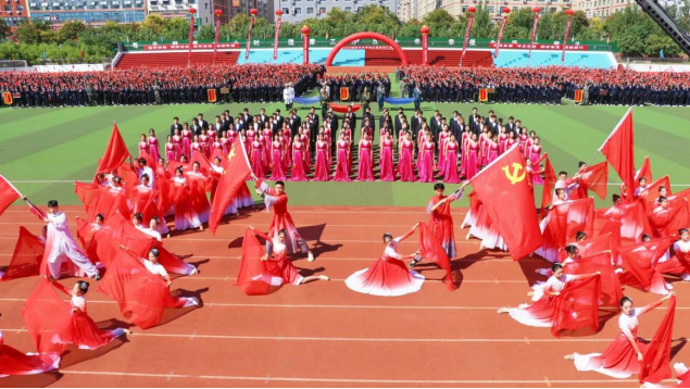 在yL23411永利集团官网星光合唱团指导老师刘营光老师的指挥下,星光合唱团团员与yL23411永利集团官网舞蹈生们联袂献上《伟大的中国,伟大的党》。合唱团团员们的歌唱雄浑豪放、气势磅礴、催人振奋,yL23411永利集团官网舞蹈生们手持“中国红”,五星红旗和党旗随风飘扬,这一抹红伴着歌声飘进每个升达人的心中,荡气回肠!