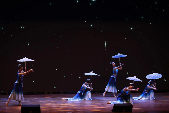 整场演出分为序、筑梦青春、春之韵、夏之光、秋之实、冬之梦六个部分,每个部分都有不同主题的呈现,作品涵盖了中国古典舞技术技巧、中国民族民间舞、现代舞、当代舞、街舞等,同学们用精湛的技艺和深情的表达,将观众带入了四季交替的美妙世界。作品有个性鲜明的独舞亦有团体协作的群舞,如《飞天》、《莲花》、《夏》、《写在风中的信》等,展现了同学们深厚的舞蹈功底和艺术修养。