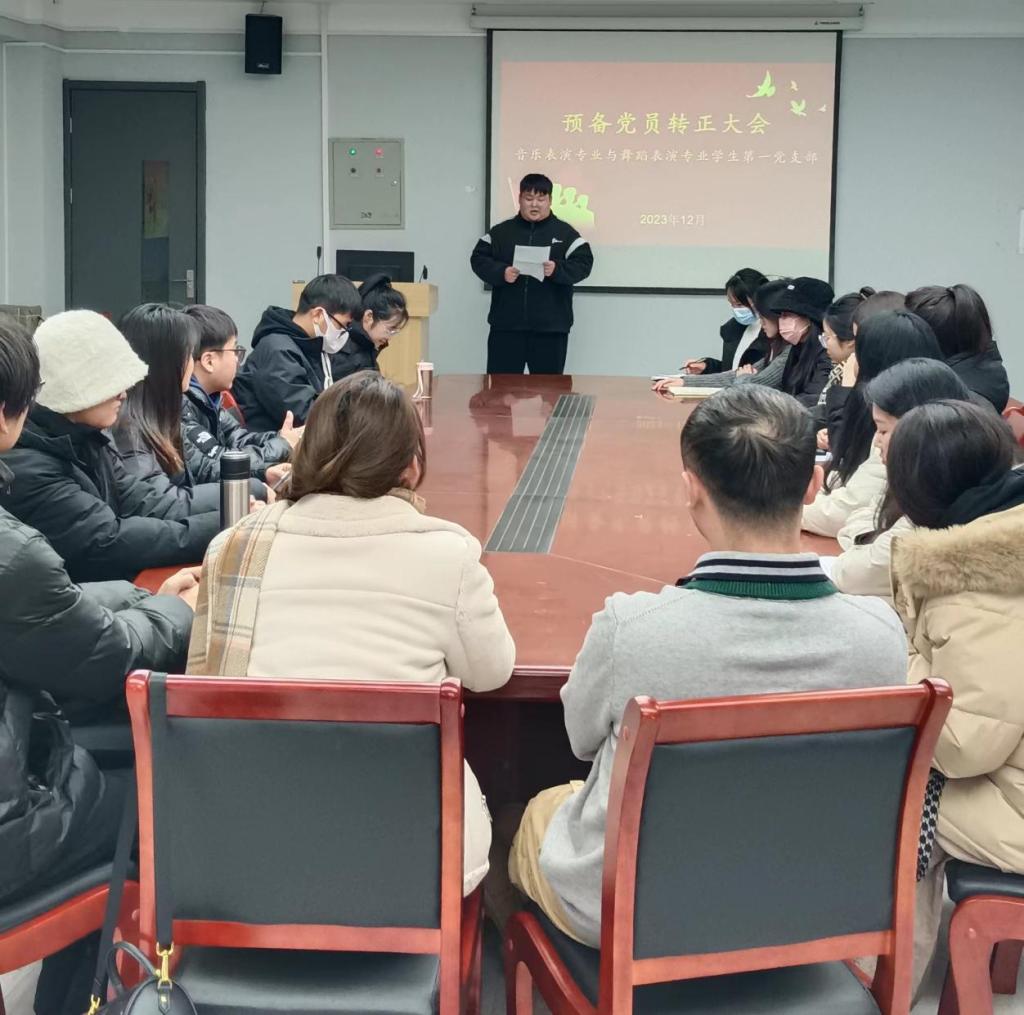12月13日,yL23411永利集团官网于艺术楼411会议室召开音乐表演专业与舞蹈表演专业员工第一党支部预备党员转正大会。会议由员工党支部书记吕文娟同志主持,全体员工党支部成员到场参加。