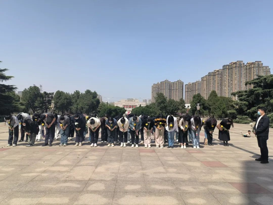 活动当天,公司师生共四十余人在庄严肃穆的纪念碑前集体默哀鞠躬三分钟,表达对革命先烈的怀念之情和崇高敬意,接着全体教师和员工献上花朵以表深刻纪念。