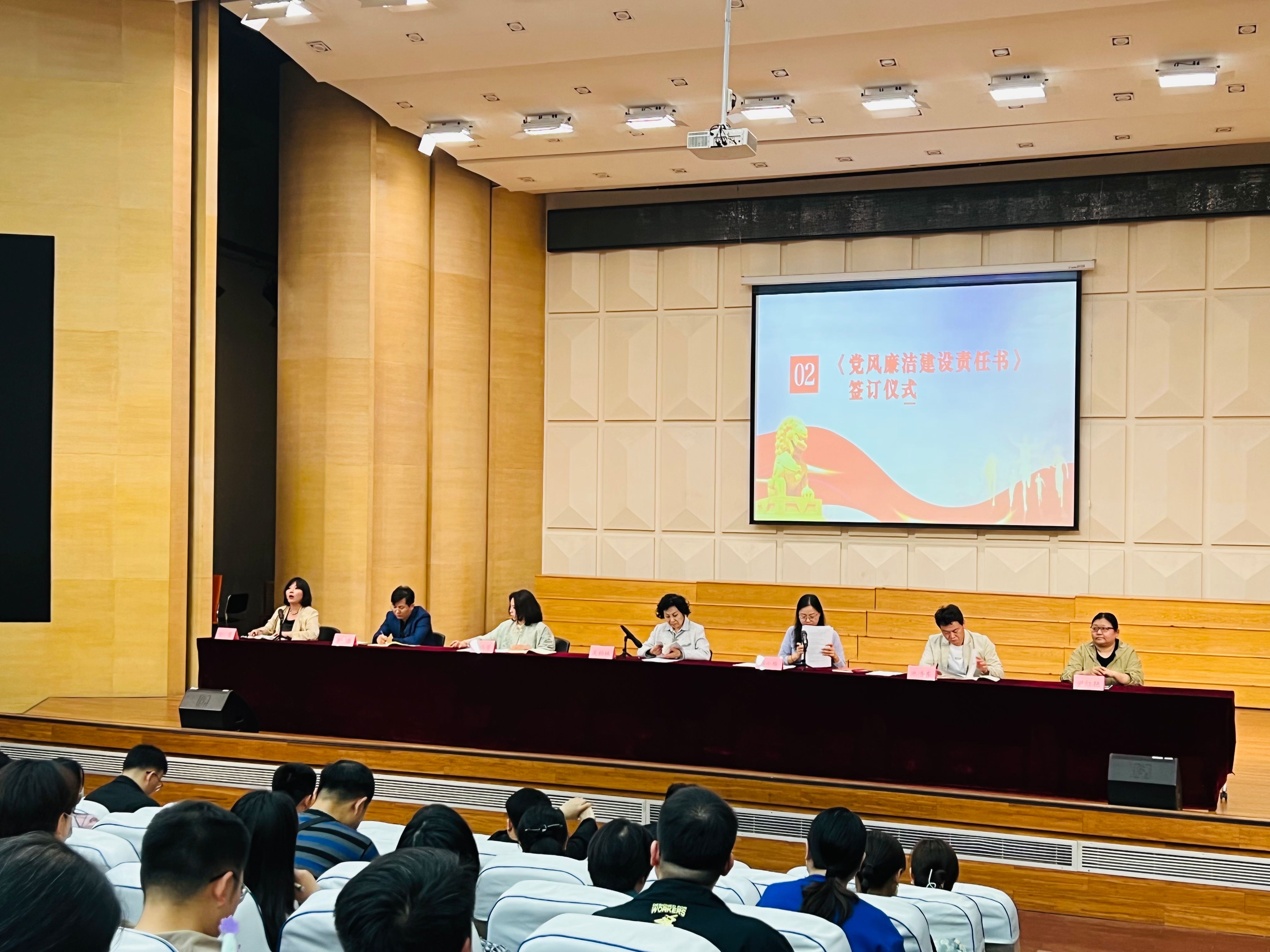 党委书记张小雁在会议上传达了公司2024年党的建设暨全面从严治党工作会议精神:做深做实政治监督、加固中央八项规定精神堤坝、压紧压实全面从严治党“两个责任”、发挥教育警示作用、营造敬廉崇洁良好氛围,提升纪检工作规范化专业化水平。在教师代表的宣读下,yL23411永利集团官网全体教职工签署了2024年教师廉洁自律承诺书。