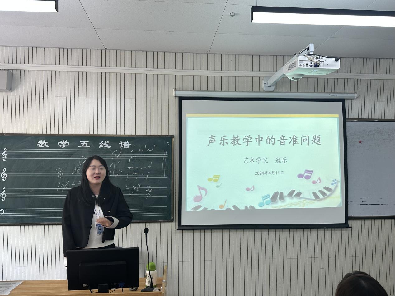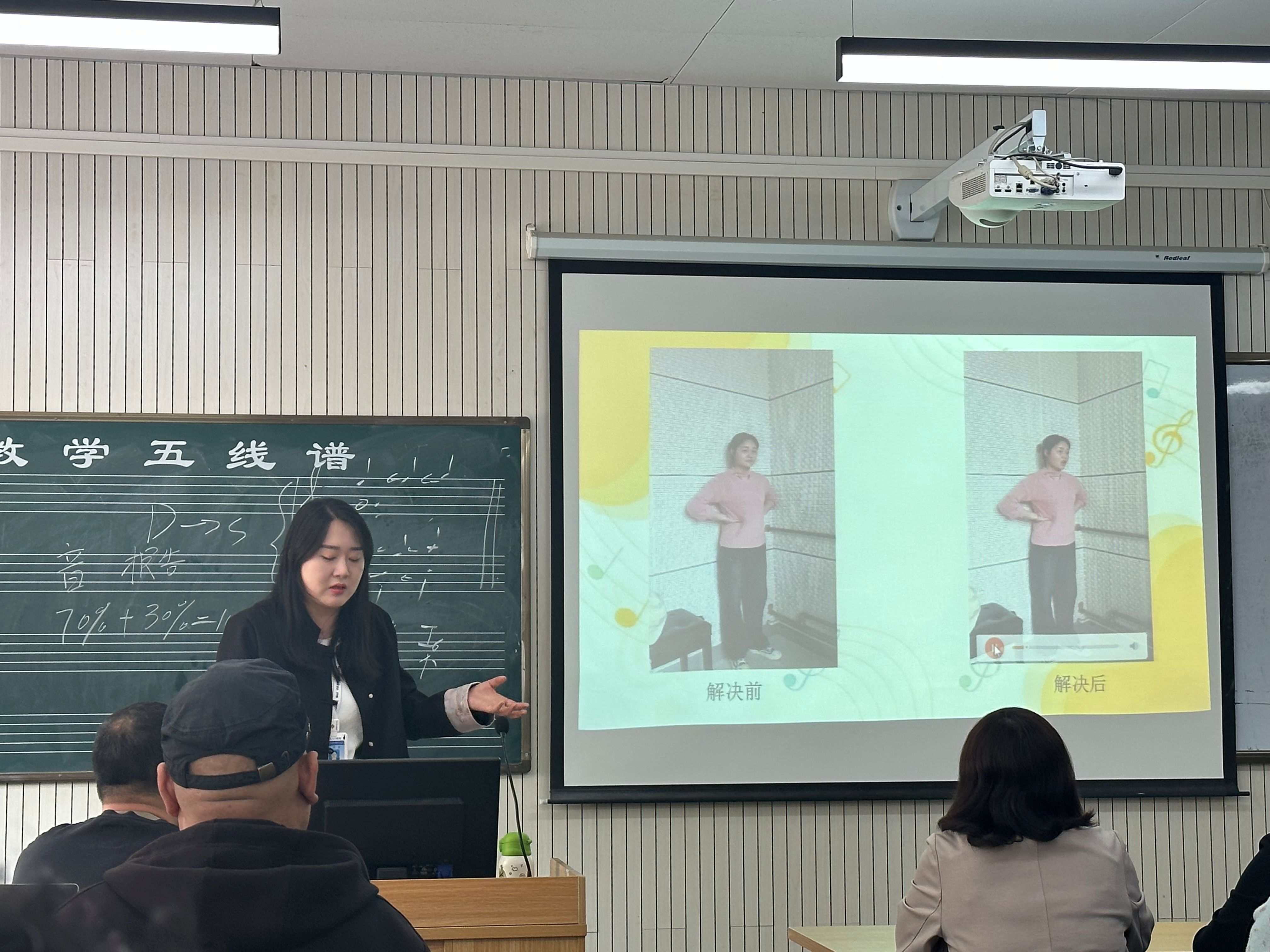 4月11日中午,声乐合唱教研室在艺术大楼302教室举行《声乐教学中的音准问题》教学研讨会,此次教研活动由寇乐老师进行分享,全体教师参加。