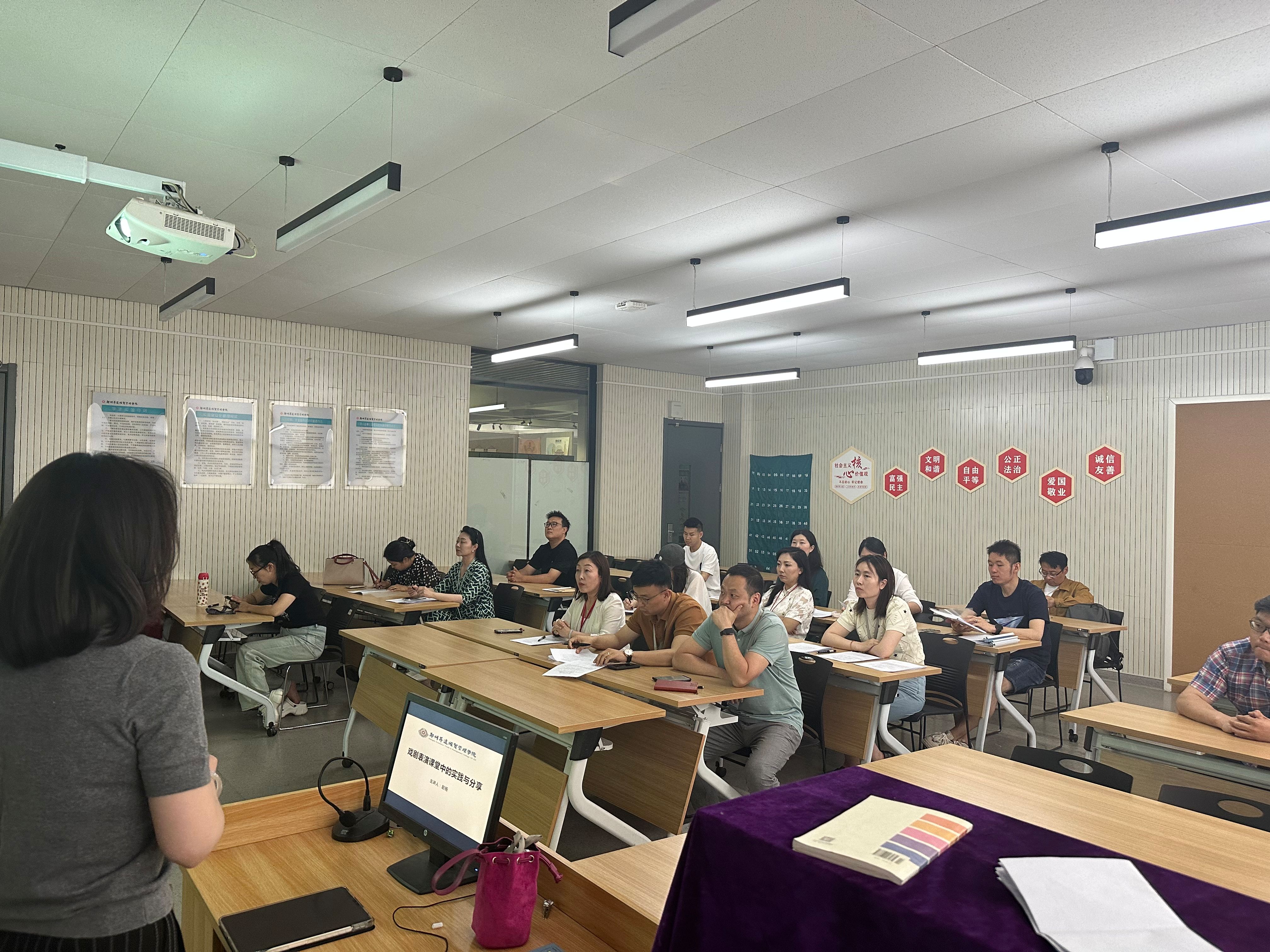 在教学分享会上,赵杨老师分享了她多年来在戏剧教育领域的经验和独到见解。她讲解了戏剧表演课堂的多样性和创造性,认为通过戏剧表演,员工不仅可以提高语言表达能力,还可以培养团队合作精神和自信心。她分享了一些创新的教学方法和活动,如角色扮演、即兴表演等,引起了现场老师们的热烈讨论和共鸣。