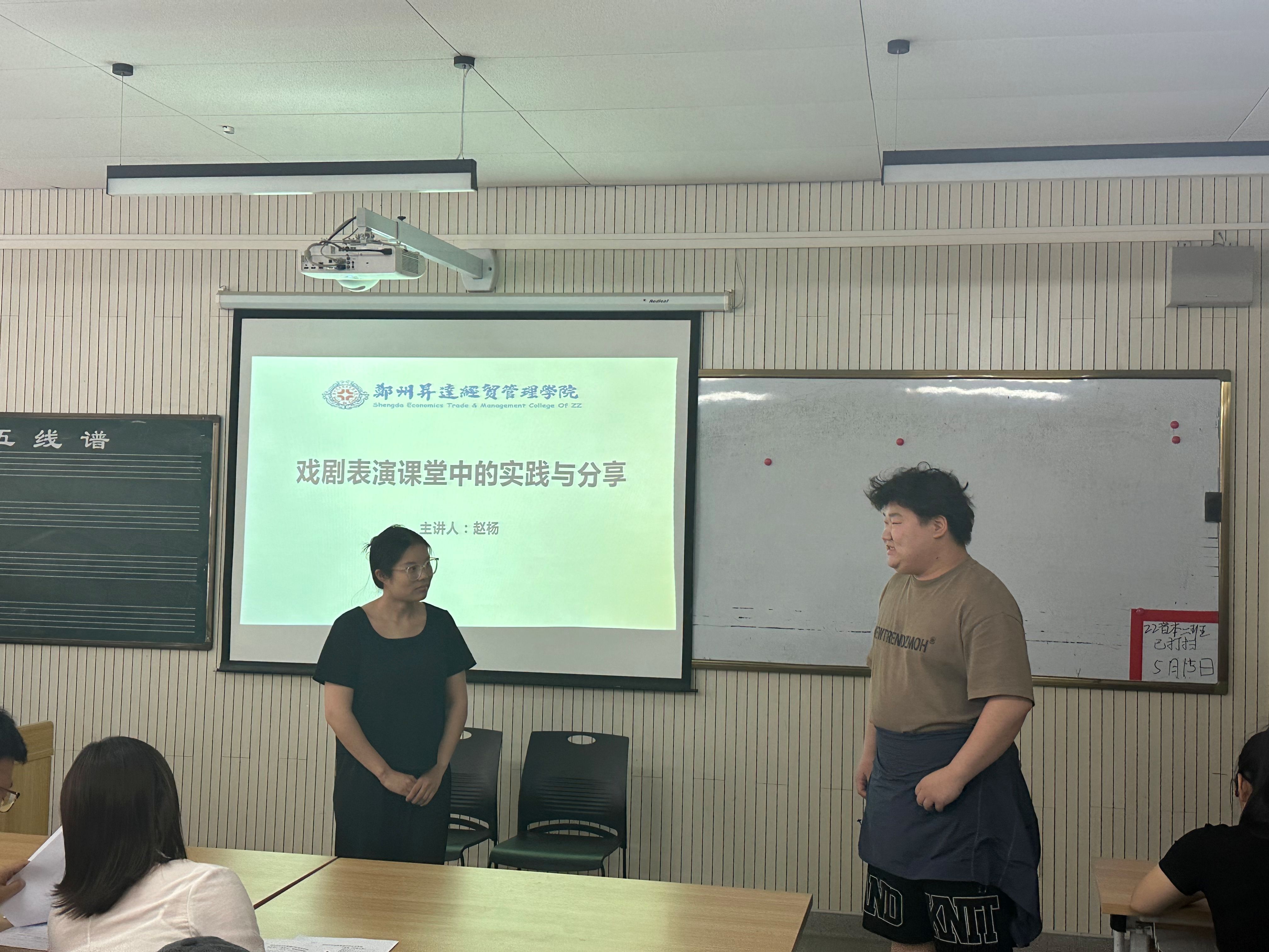 5月16日中午,声乐合唱教研室在艺术大楼301教室举行《戏剧表演课堂中的实践与分享》教学研讨会,此次教研活动由赵杨老师进行分享,全体教师参加。