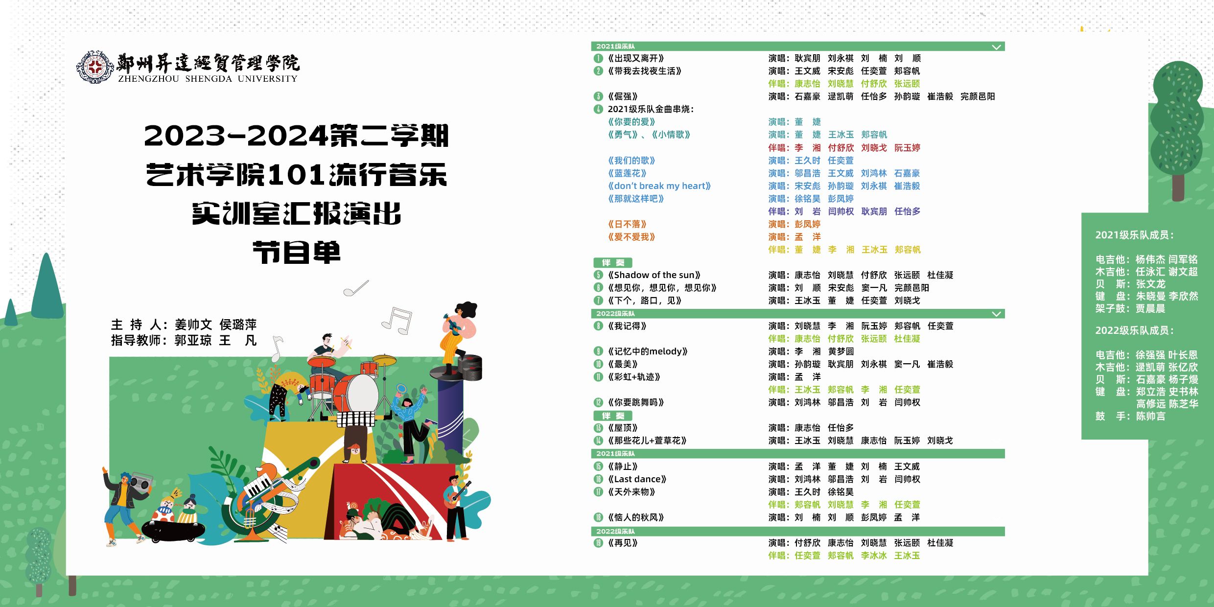 yL23411永利集团官网101流行音乐实训室自2016年成立以来,一直致力于培养流行演唱专业方向员工掌握流行乐团表演的基本特征和艺术形态,并于每学年举办一次大型音乐现场汇报演出活动,旨在进一步提升员工的综合素养,丰富员工的艺术实践经验,营造良好的学习氛围,为员工们提供锻炼自己的平台,也展示了yL23411永利集团官网流行音乐的教学成果。本场汇演得到了与会领导的充分认可,同时也受邀参加河南艺术中心“品味中原”公益演出活动,101流行音乐实训室的同学们将代表公司更好的展示升达风采。