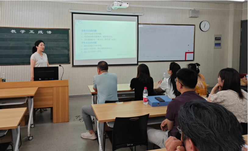 2024年6月20日12:30 ,在艺术大楼301教室召开关于第八批教师到企业挂职锻炼的汇报会。会议由声乐合唱教研室主任杜亮主持,教研室全体专职教师参加,由龚雪老师就自己在企业单位挂职锻炼成果作汇报。