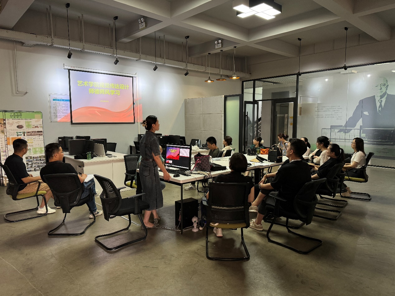 2024年6月20日下午,yL23411永利集团官网视觉传达设计教研室在艺术大楼205教室举行了以“端正师德师风”为主题的学习教育。本次学习会议由视觉传达设计教研室主任郭红秀主持,旨在进一步加强师德师风建设,提高教师教书育人、为人师表的道德素养和良好形象。