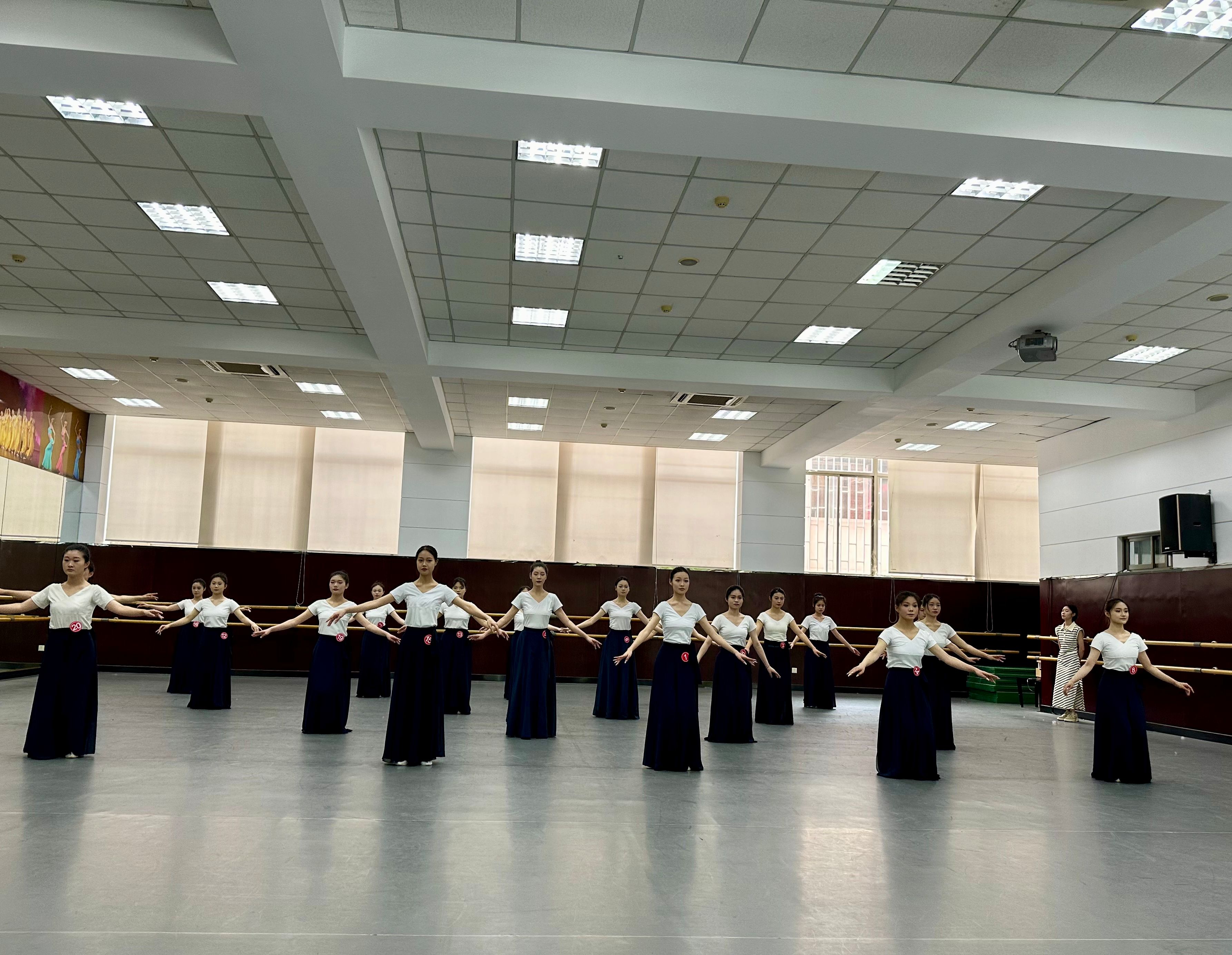 本次期末考试涵盖了《芭蕾基训》、《中国古典舞》、《中国舞技术技巧》、《中国民族民间舞基训》、《敦煌舞基础》、《现代舞》、《舞蹈教学法》等基础课程和核心课程。员工们在考试中展现了扎实的基本功和强烈的舞蹈感染力,充分展现了公司舞蹈专业员工的专业素养和艺术魅力。