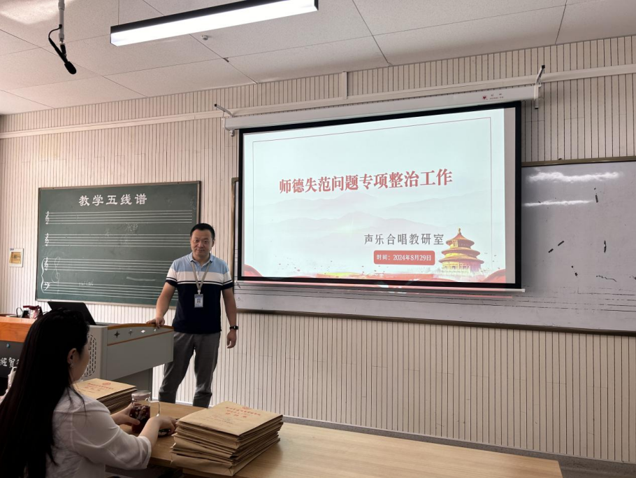 2024年8月29日,为进一步加强教师队伍的师风师德建设,提高教师的职业道德水平,声乐合唱教研室召开了师风师德警示教育学习会议,此次会议声乐教研室主任杜亮主持,全体教师参加。