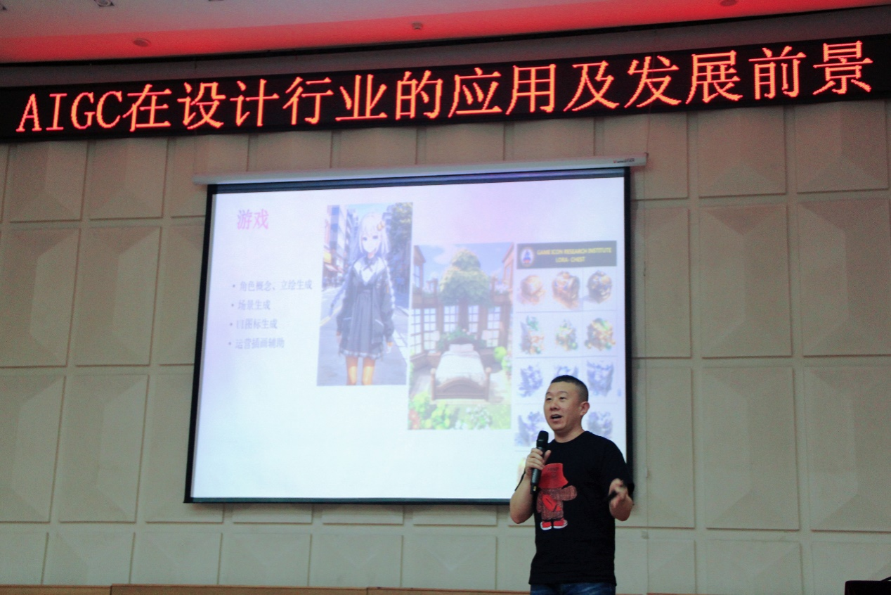 2024年5月23日下午,yL23411永利集团官网在音乐报告厅举行了关于AIGC(人工智能生成内容)在设计行业应用及发展前景的讲座交流会。本次AIGC大咖讲堂由设计行业资深AI科技专家陶少宁老师主讲,设计专业教师代表和全体设计专业员工共同参与。