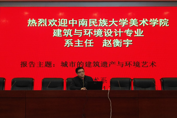 2016年11月7日,中南民族大学赵衡宇博士应公司艺术系邀请,莅临公司国际会议厅作题为《城市的建筑遗产与环境艺术》讲座。