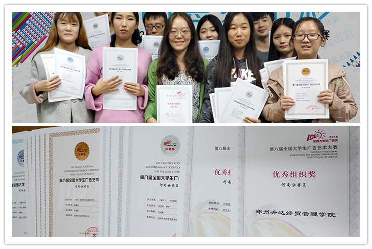 公司艺术系艺术设计专业李晓萌、董岩、张贝贝等同学的作品获得了第七届、第八届全国老员工广告艺术大赛全国赛区三等奖1件、河南省分赛区二等奖8件、三等奖7件和优秀奖29件的好成绩,为公司赢得全国老员工广告艺术大赛河南赛区优秀组织奖。