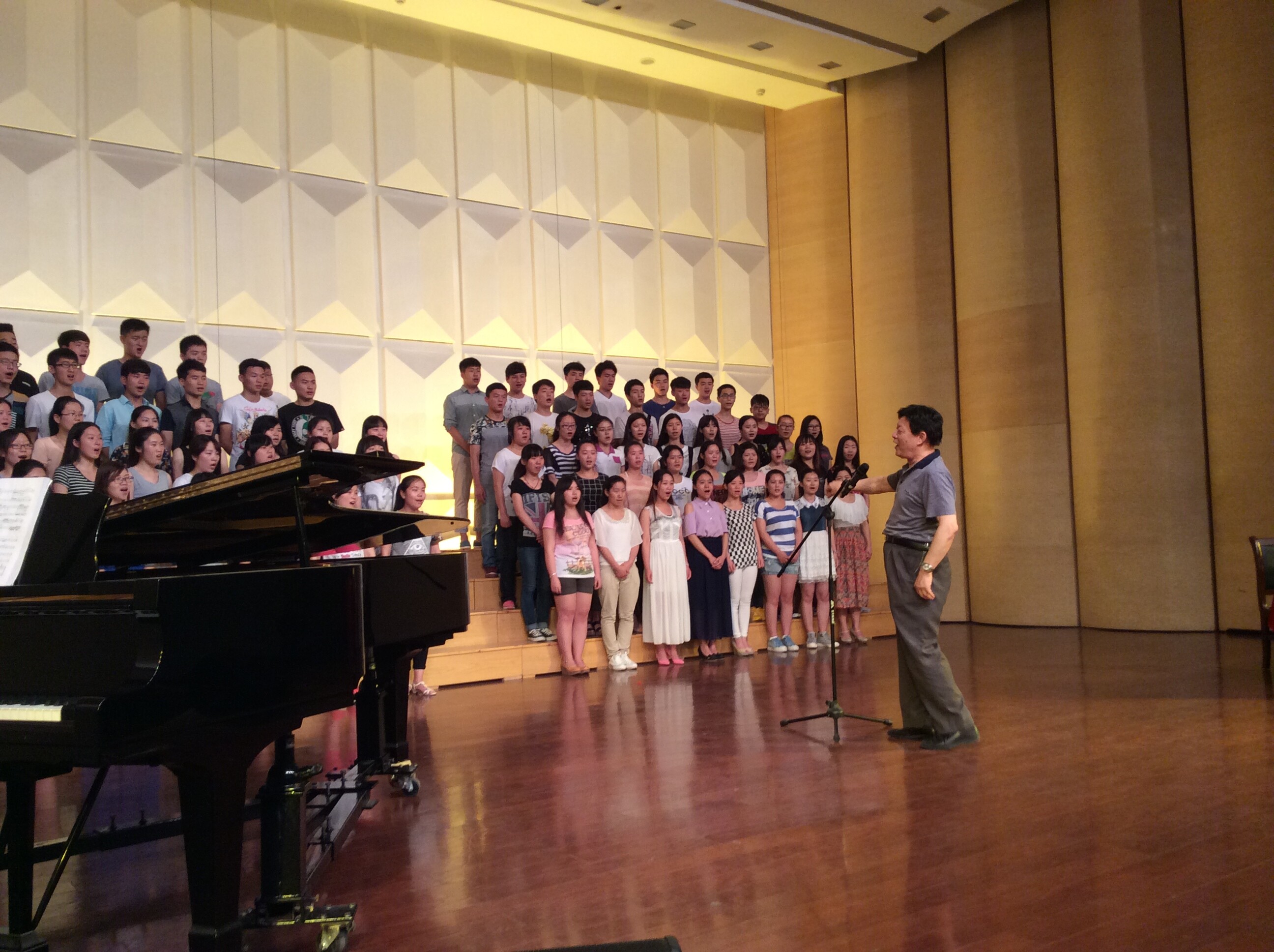 2014年5月28日,我艺术系有幸请到了武汉音乐公司教授,中国音乐家协会会员,中国合唱协会理事、我系兼职教授陈国权老师在我系音乐厅进行合唱指挥讲学。陈国权教授现任武汉音乐公司合唱团,交响乐团指挥,并任武汉星海合唱团,武汉教师合唱团,武汉歌舞剧院武汉之声合唱团首席指挥。