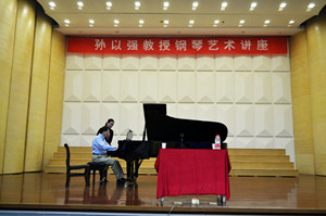 2013年4月24日下午2点30分,在艺术大楼音乐厅,孙以强教授在,为师生们举办了一场质朴而又生动的讲座音乐会,我系肖生主任及全体师生聆听了本次讲座,本次讲座以《谈钢琴教学中的问题与实践》为主题,作为老师,提出在构建一首新作品的框架时,要借用图像、景色、影片场景等来启发音乐气氛来教授教员工怎么去弹奏,并现场进行了公开教学,对我系5名师生进行了现场指导,本次学术活动为我系钢琴教学水平的提高打下了坚实的基础。