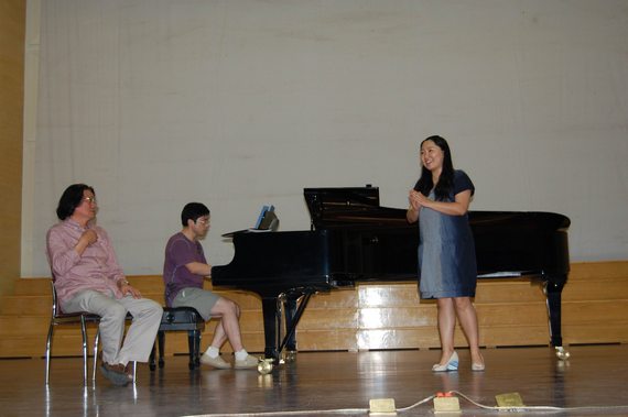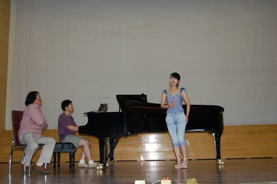 2011年6月17日上午,武汉音乐公司音乐教育公司声乐教授、中国声乐学会常务理事、公司艺术系名誉教授李万进来回到我系,在音乐厅进行了精彩的声乐讲学。艺术系青年教师池浩东、安冉、刘新义、王勇、张爽分别演唱了《情姐下河洗衣裳》、《黄河渔娘》、《桥》、《教我如何不想他》、《花儿为什么这样红》等不同风格的声乐作品,演唱过后李万进教授做了精彩点评,并现场进行了细致的指导。经过李万进教授的现场指导,青年老师们都分别从音色、吐字咬字、气息、作品处理等方面得到了明显的变化,受益匪浅。