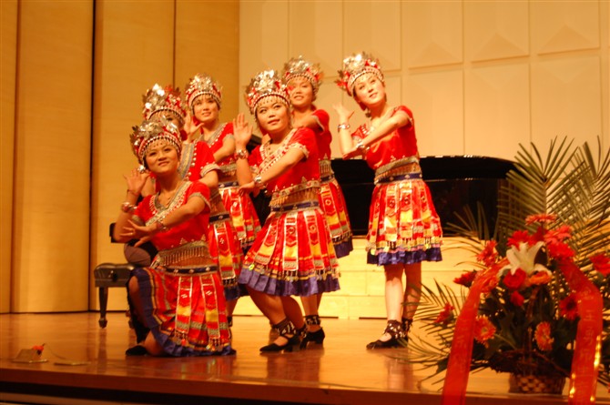 此次音乐会节目形式丰富多彩,有男女声独唱、重唱、男生小合唱、女生小合唱等,题材更是丰富多彩,包含美声歌曲、艺术歌曲、创作歌曲、外国民歌、中国民歌、原生态歌曲等,老师和同学们载歌载舞,把音乐会推向一个又一个高潮。看这群漂亮的姑娘们为大家带来一首重唱歌曲《赶圩归来阿哩哩》。