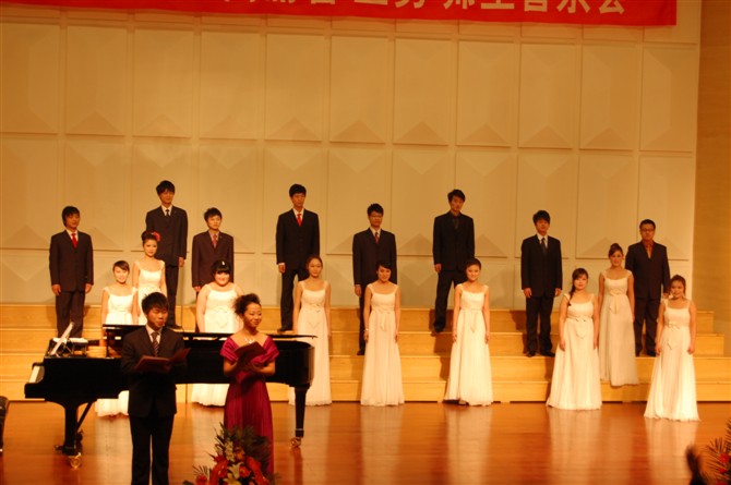 由艺术系主任肖生教授致辞,他希望07级毕业生牢记母校四年的辛勤培育,牢记创办人“吃苦、吃气、吃亏”的三吃精神,在今后的学习和工作中继续努力,创造更优异的成绩。音乐会在合唱《飞来的花瓣》歌声中拉开帷幕。