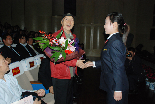 最后,伴随着艺术系7名员工演奏的古筝合奏曲《步步高》的欢快热烈气氛,创办人以及有关领导上台与演员合影留念,演出在祥和、热烈的气氛中圆满结束。(艺术系张苗苗)