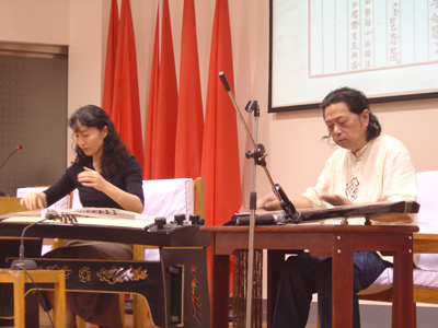 2006年5月26日,由艺术系主办的“琴瑟文化与演奏艺术”学术报告在院国际会议厅隆重举行,本次报告会公司荣幸地邀请到了武汉音乐公司丁承运教授和傅丽娜副教授,丁承运、傅丽娜夫妇从事音乐工作三十余载,一直致力于中国琴瑟文化的挖掘与研究,为中国古乐文化的发展做出了卓越贡献。这场质朴而又高雅艺术盛宴,吸引了百余名业内外人士的关注,国际会议厅济济一堂,每位老师和同学怀着圣洁的心翘首以待。