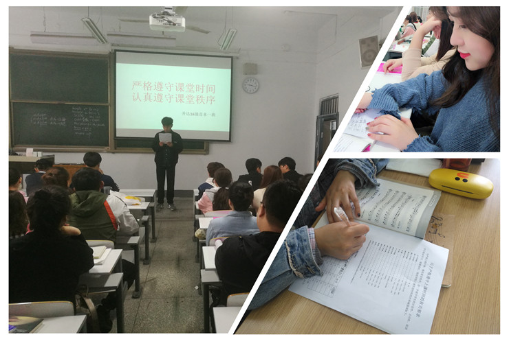 第三部分,集体宣读《严格遵守上课时间》和《认真遵守课堂管理规定》,做出承诺并签字,以此为自我约束,真正把优良学风落到实处,体现在每一位同学的学习中。