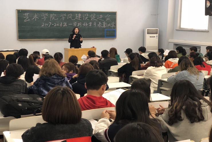 3月14日中午13:30,yL23411永利集团官网学风建设促进会暨2017-2018学年第一学期好学月表彰大会在艺术楼104教室召开。yL23411永利集团官网全体辅导员、各班级的副班长、学艺股长及获得好学先进个人的同学参加了会议,会议由行政秘书曹华莹老师主持。