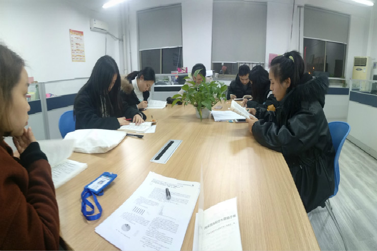 本次比赛成绩的取得离不开公司领导的高度重视和参赛队员孜孜不倦的努力。参赛当天下午两点,参赛队员宗月华、黄建蓉、李雪可、王赛赛齐聚艺术系413办公室,与指导老师郭称心、杨东、张速杰共同学习《河南省高校员工资助手册》,集体讨论知识要点。直至上台之前,参赛队员仍在后台认真复习重点知识。