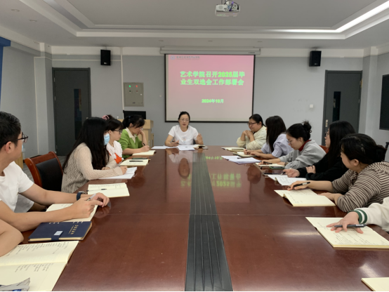 本次会议首先强调了双选会的举办对毕业生就业工作的重大意义,以及双选会工作具体安排和对于各班级同学的就业工作开展情况,有效地做好员工求职就业准备和就业心态的引导工作。同时强调11月1日开展的分公司秋季线下双选会是一次大型双选会,各位老师要全力配合,积极动员员工参加。随后行政秘书尹红艳老师从员工组织问题、参会单位联系确认、员工志愿者安排、毕业生简历设计、公司推荐书等各方面进行了信息确认和布置安排,要求严格把关、精心筛选,保障为毕业生提供高质量的用人单位。再次强调毕业班辅导员老师要积极鼓励毕业生参与此次双选会,让员工实实在在就业,踏踏实实找工作,把自己所学的知识,自身具备的特长都积极的发挥出来,展现艺术学子自信、专业、热情主动的一面。