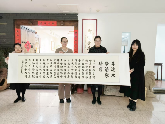 随后,党委书记张小雁向河南圣霖文化传媒有限公司赠送了创办人王广亚博士亲笔书写的《治家格言》以及相关纪念品。