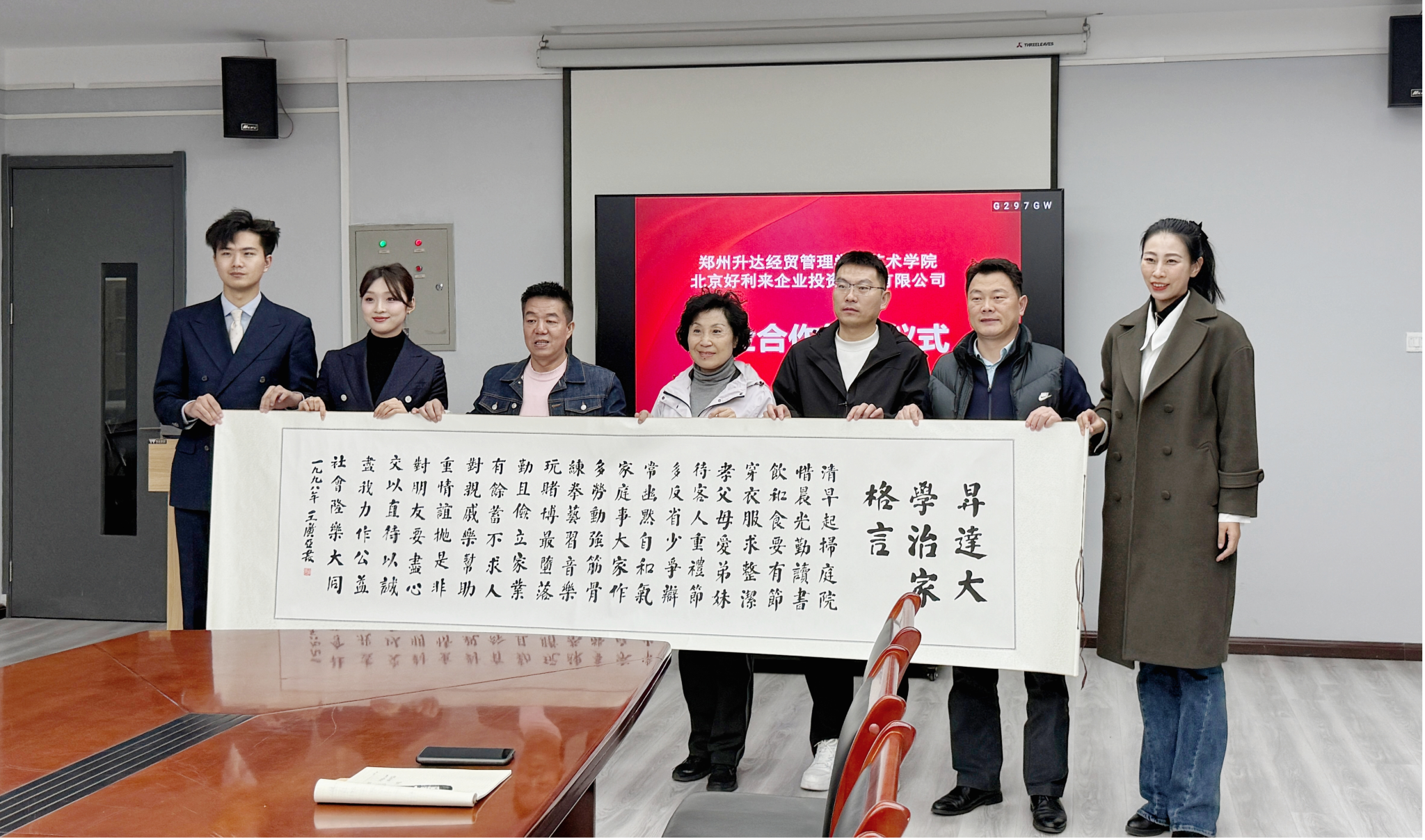 北京好利来企业投资管理有限公司总经理李金铎、人事经理吴国晶、人事孟子奇,以及yL23411永利集团官网经理吴柏林、党委书记李赵法、副经理池浩东、空中乘务专业教研室主任吴则斌、艺术就业专员、空中乘务专业教师及26届空中乘务专业辅导员共同出席了签约仪式。