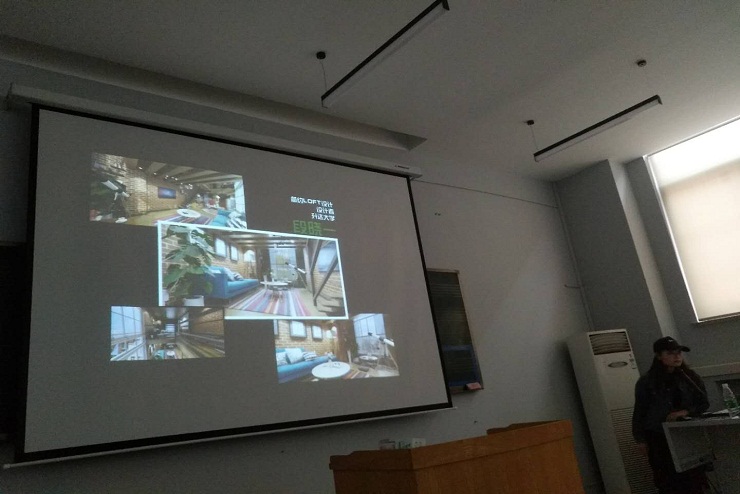 从最新综艺节目《漂亮的房子》的设计及效果图到后期的员工作品,独特的讲解使同学们大饱眼福、受益匪浅。员工说,几乎不敢相信这些竟然是我们用电脑做出来的效果图。之后,公司已经在实习的员工讲述自己的现状、看法,帮助学弟学妹们了解专业的就业前景,提升对专业的认知。