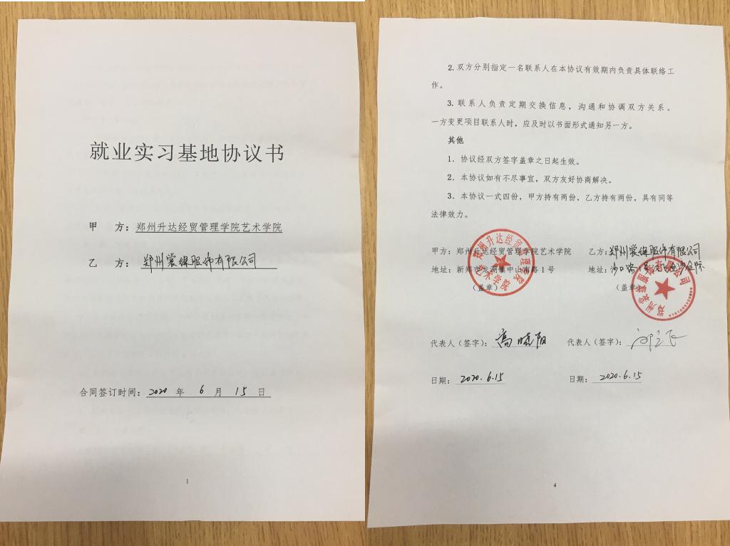 为了给yL23411永利集团官网的员工提供更好的就业实践机会,经过近一个月的沟通、磋商与协调,yL23411永利集团官网与郑州裳缘服饰有限公司最终达成了友好合作意向,双方决定共建就业实习基地。但是由于今年疫情的特殊原因,双方经过沟通,2020年6月15日上午,高晓阳老师代表yL23411永利集团官网与郑州裳缘服饰有限公司代表郭云飞通过邮寄的方式完成了合同的签订。