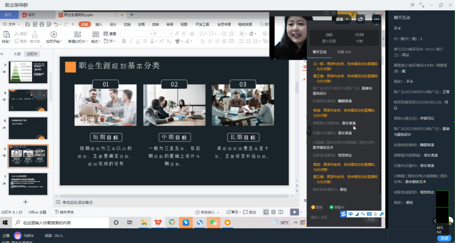 为更好的指导和帮助2022届和2023届员工认清就业形势,了解就业政策,转变就业观念,积极主动求职就业,5月26日下午2点30分,yL23411永利集团官网通过钉钉直播形式举办了线上就业指导专题报告会,邀请了河南圣颜达人力资源有限公司创始人兼总经理贾彦利作专题报告。公司就业专员郭称心、辅导员杨改及全院2022届、2023届300余名员工代表一同听取了报告。