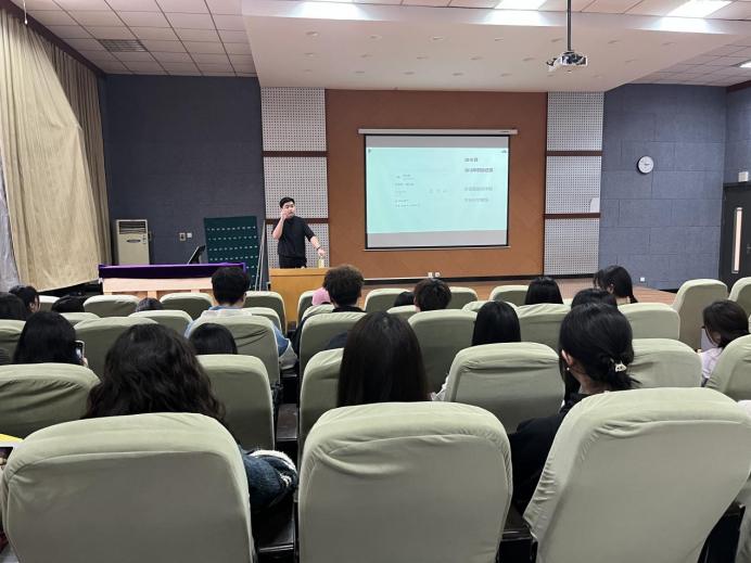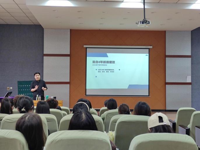 高允浩员工首先进行了一个简短的自我介绍;接着,高允浩员工结合自己的创业经历,从事业发展的成果展示、2023年看2019年两个时空的对话、5个隐藏小故事、学会运用工具等4个方面,以幽默风趣的语言,和同学们进行了分享。最后,高允浩员工鼓励大家既要心怀理想、拓宽格局,又要脚踏实地、实事求是。他特别强调同学们一定要端正态度、重视学习,把自己的专业学好、学稳、学扎实。高允浩员工还与同学们就目前在就业方面的困惑与问题进行了交流。