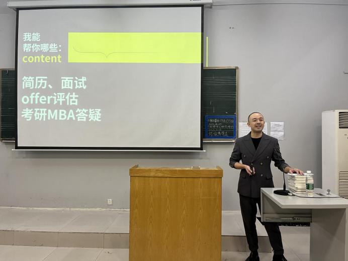报告开始,马路从“我是谁”以及“我能帮助你哪些”两方面,以幽默风趣的口吻向大家做了自我介绍。随后,马路在与同学们的积极互动中开始了报告。在报告会进行到高潮部分时,马路员工从搜集“军情”、锻造装备、披荆斩棘三个方面向同学们传授了如何自信求职,高效就业的经验。最后,马路还与同学们就目前在就业方面的困惑与存在的问题进行了深入交流。此次报告会现场气氛高涨,同学们专心听讲,达到了良好的效果。