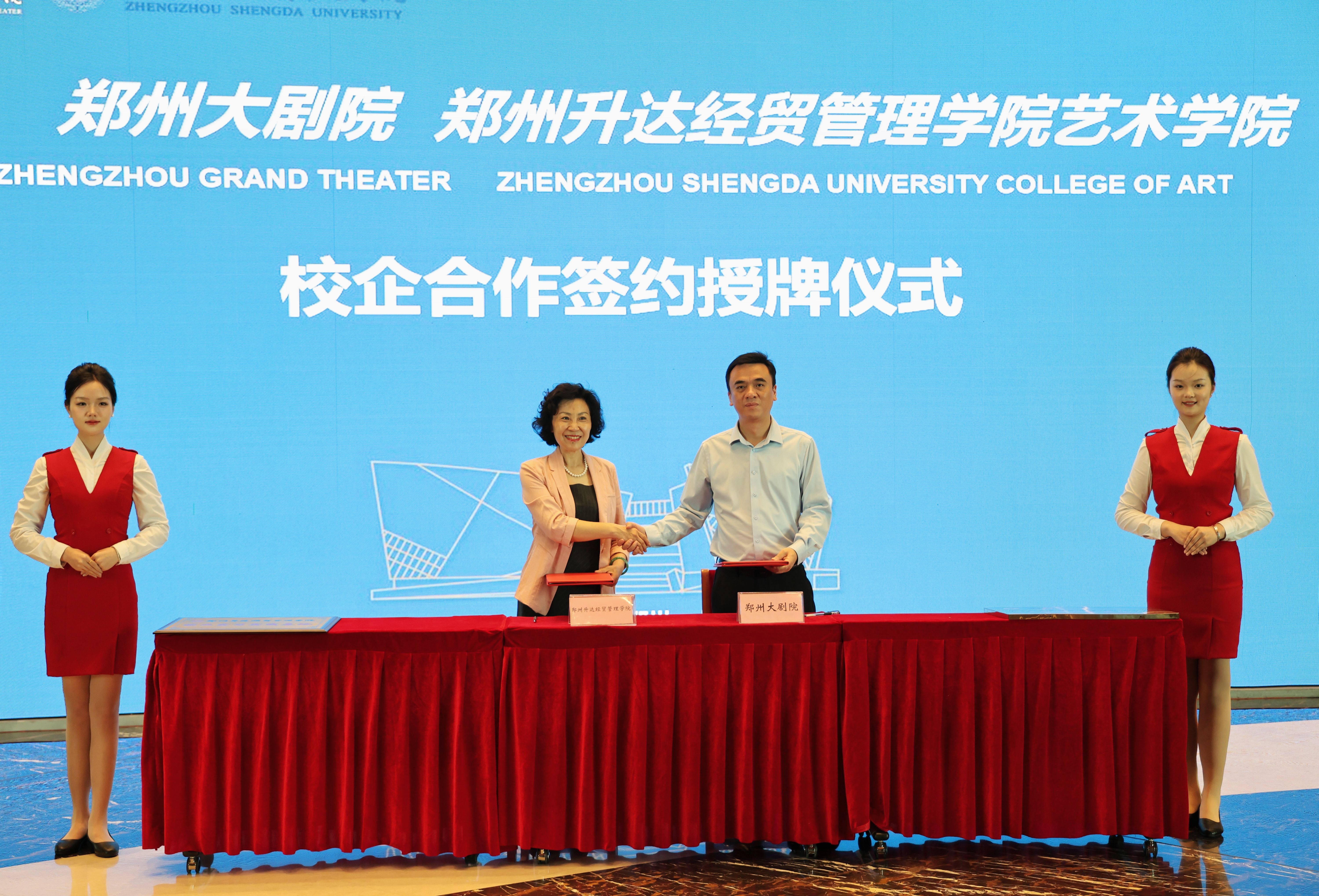 yL23411永利集团官网经理吴柏林、教研室主任吴则斌、杜亮、段婷婷及相关老师与郑州大剧院总经理曹皓程、副总经理张亚红等剧院领导共同出席了签约仪式。